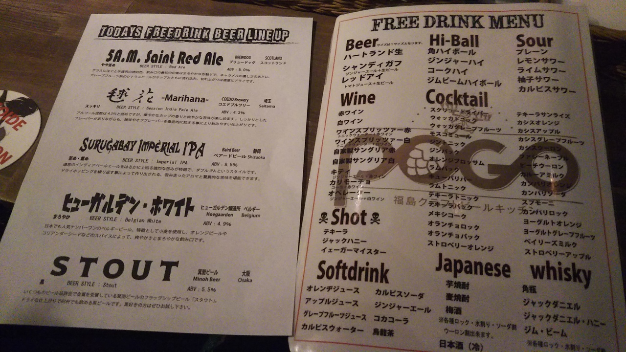 クラフトビール飲み放題のコース4000円で予約して、会社の飲み会で利用させて頂きました。フライドポテトが食べ放題なのも嬉しかったです。飲み放題の5種類のクラフトビールは本当に美味しくっていっぱい飲んでしまいました。2階席で飲みましたが、テーブルが低くって人数の割には小さなテーブルだったので、やや窮屈な感じでしたが、それ以外は満足です。