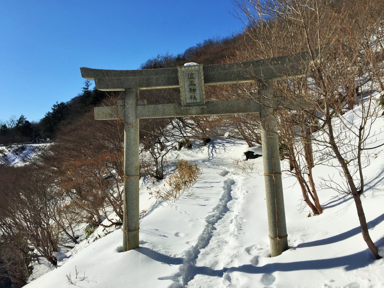 那須温泉湯本に第34代舒明天皇の御代、狩ノ三郎行広が白鹿を追い求め、谷に湧く温泉を発見し神社を建立したとのことです。