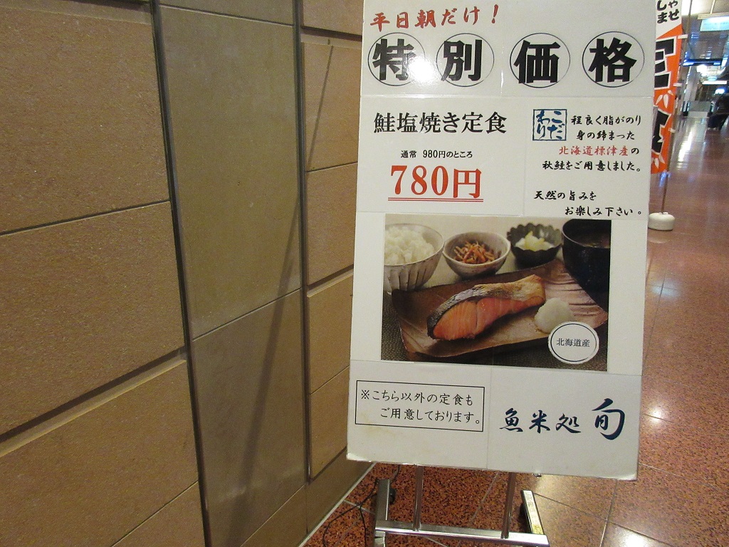 朝の便を予約していたため、朝食をとらずに羽田空港の第2ターミナルに到着。チェックインを済ませ向かった先がこの「魚米処 旬」です。鮭の塩焼き定食が780円ということで安くはないですが、ANA系列らしいしっかりした味の朝ごはんを頂くことが出来ました。