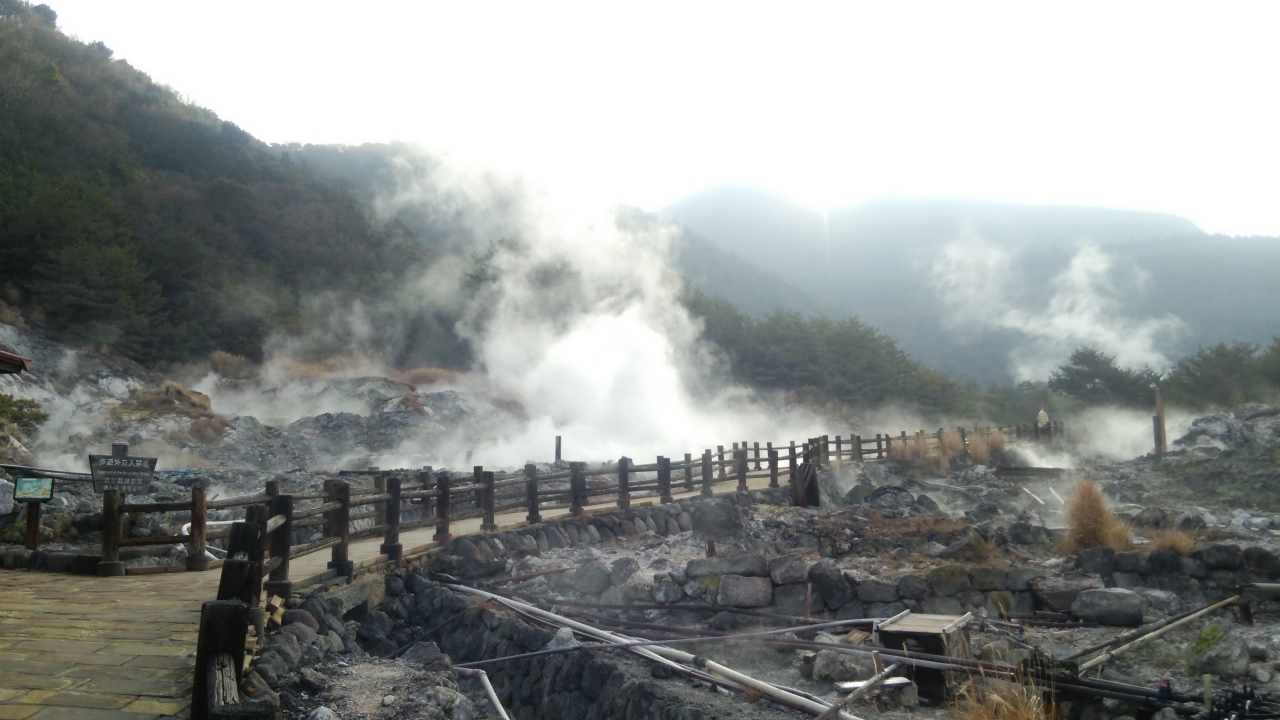 別府の地獄巡りにも行きましたが、雲仙は一ヶ所に地獄が固まっていました。温泉神社から行きましたが、いろんな名前の地獄があり、一周するのに40分ぐらいかかりました。湯気が出て暖かくなる石の上で猫が寝ていたのがほほえましかったです。