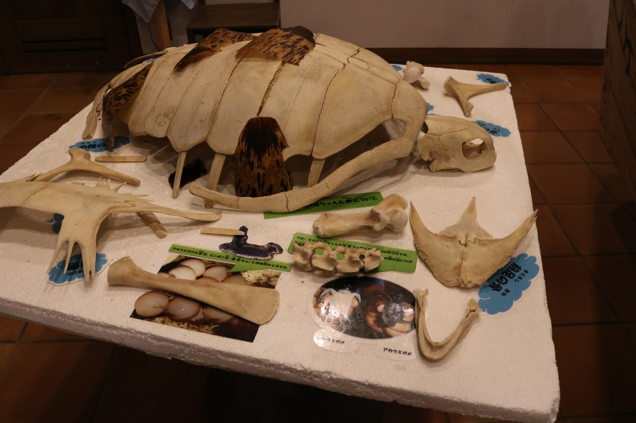 サンゴの関連のものはもちろん、漁の道具、ウミガメの骨(ほんものかどうかは?)などが展示されていました。