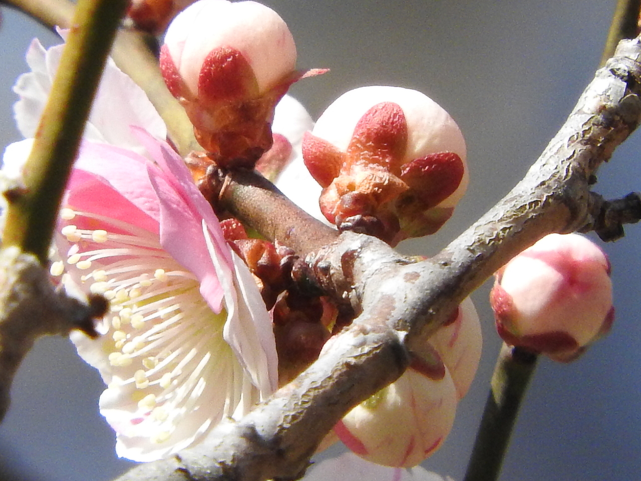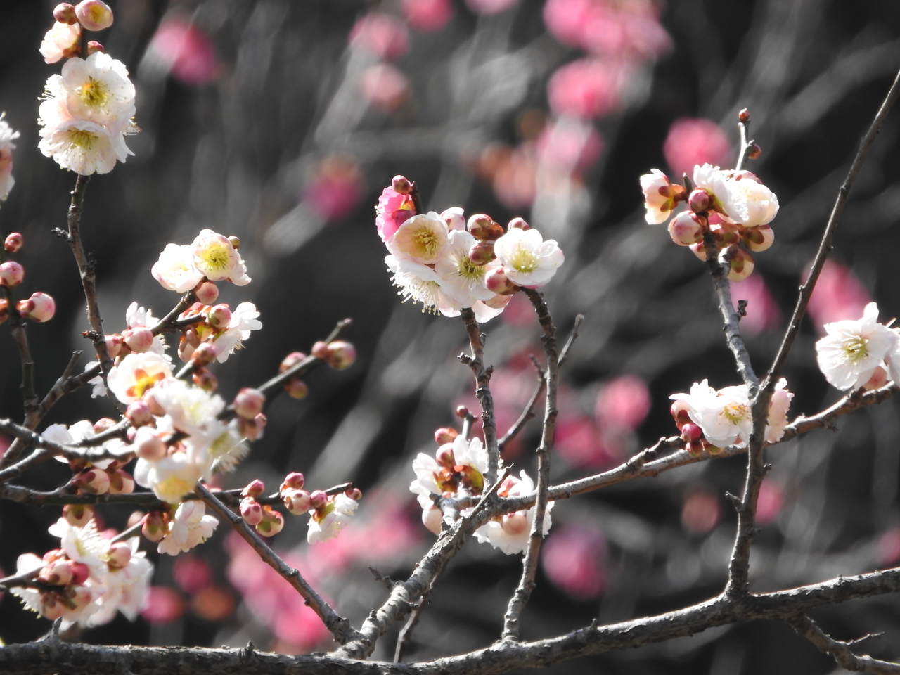 思いのままという品種の梅を狙って行ったのですが、ちょっと早かったようで、つぼみも多く、2色になっているのは一輪だけで、探すのに一時間ぐらいこの梅の花の前にいました(笑)