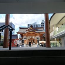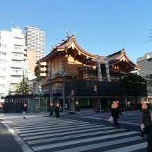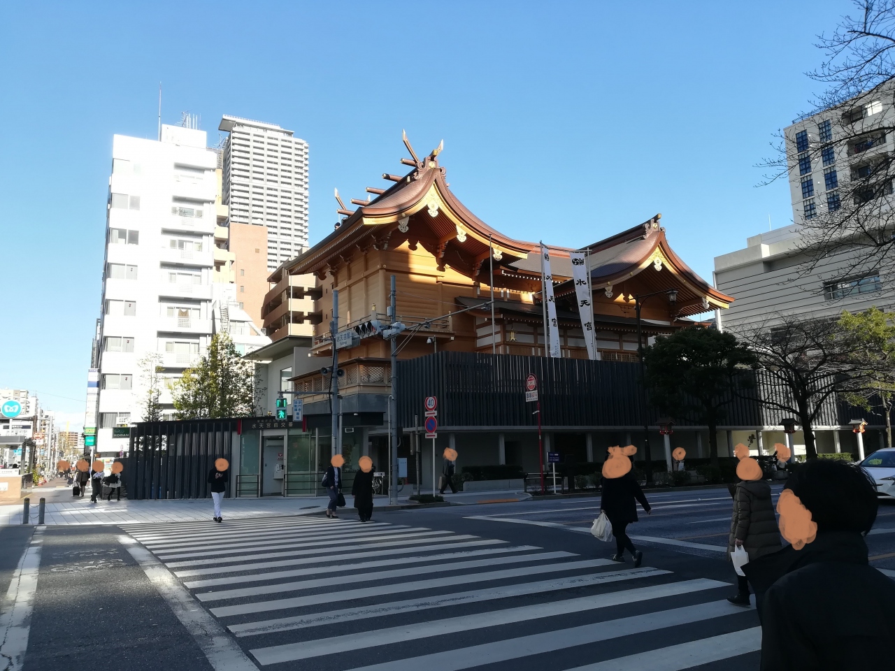 水天宮前の交差点から立派なお社を上の方に眺められたのですが、入り口がわからず少しうろうろしました。結果、南側に入口を発見。ビルのような建物の階段を登っていくと前方に先ほど交差点から見えたお社がありました。大きなお社で平日でも参拝客が多かったです。