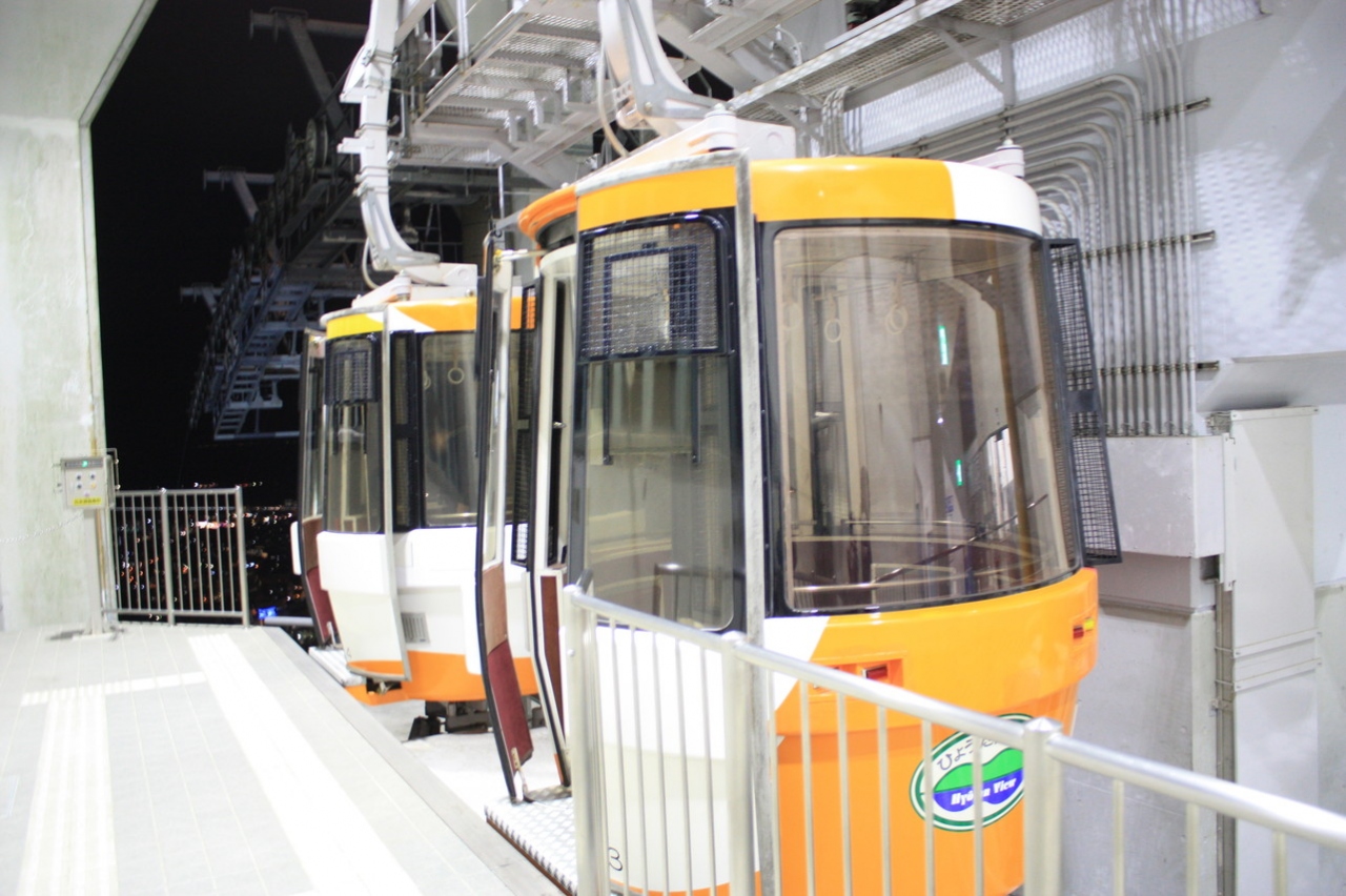 徳島の夜景を見にロープウェイに乗車しました。大人、往復1020円なり。丸型の機器が2台連結していたので、下側の機器に乗車しました。我々以外、乗客がいなかったので。機器の窓周辺に外に向けたLEDがあり、籐目には綺麗でしょうけど、乗客はガラスに写りこむ光で夜景が見難い。5分ほどで到着するも、展望台と脇に小さなショップがあるだけで、時間をもてあまして、帰りの機器はさっき上がってきたものでした。10分も居られない気がします。昼間は もっと見る所があるのかな?