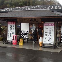 きんつばやがちゃまんと呼ばれるあんの入った和菓子が目玉のようで、ばらでも購入できました。他にも、栗ようかん、和風のケーキ、クッキーなどのお土産が陳列していました。お菓子専門のお土産屋さんのようでしたが、ちょっと休憩してぜんざいを食べることもできるようです。