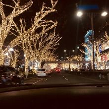 ドライブの帰り道に車で通ってみました。毎年綺麗なイルミネーションで有名な所です。平日の夕暮れ後だったのでそれ程混んではいませんでした。土日のクリスマスシーズンだと車も人も繰り出しますので特に車は渋滞に要注意です。