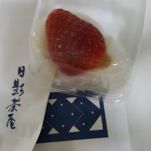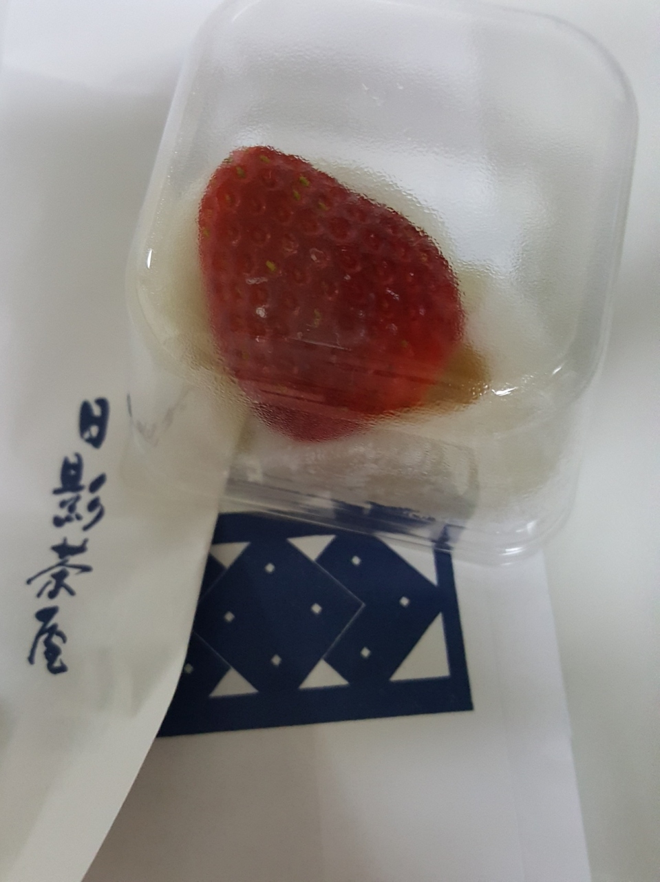 この時期は大好きな「いちご大福」を!甘すぎない白あんを柔らかい(羽二重?)お餅でくるんでいて大きなイチゴが乗っています。