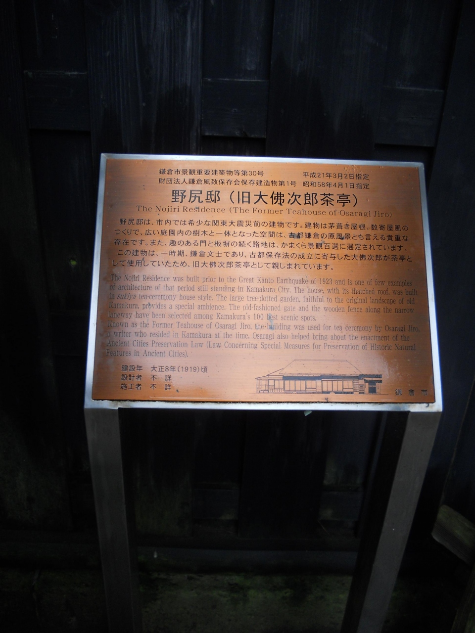 初めての鎌倉訪問で、「鶴岡八幡宮」を観光後、「三の鳥居」の前の通りを東に進んで細い路地のところにある「大佛次郎茶亭」へ行ってみました。