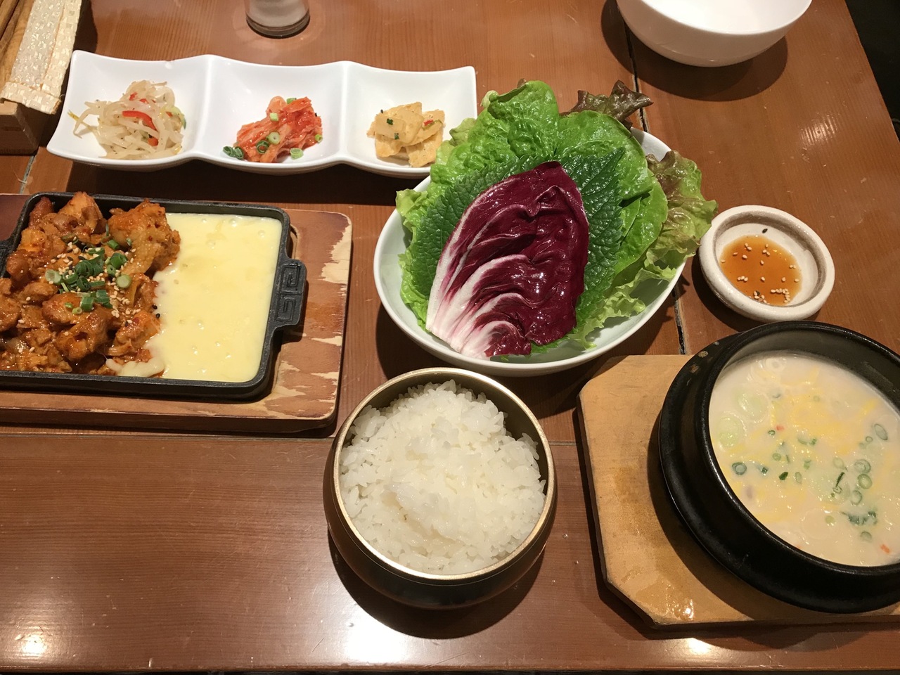高島屋のデパートのレストランフロアにあるので立地は抜群です。地方の人との待ち合わせには迷いません。当日はダッカルビをオーダー、出て来た定食はインスタ映えする感じでしたが、熱々のチーズに鳥をくぐらそうとしたらチーズがそのままの形で持ち上げられてしまいました。つまり、チーズは熱くなく生温いので全くイメージと違うものになりました(〃ω〃)