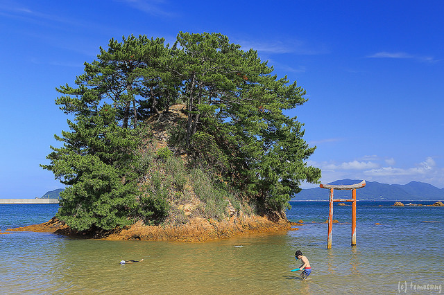 島の前には鳥居が設置されていて、ちょっとした景勝地のようになっている。