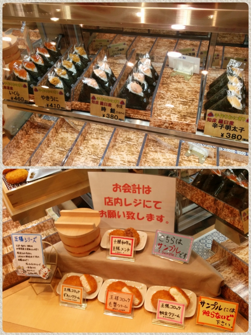 いくら(460円)と時鮭のおにぎり(380円)、黒豚のコロッケ(380円)を購入しました。