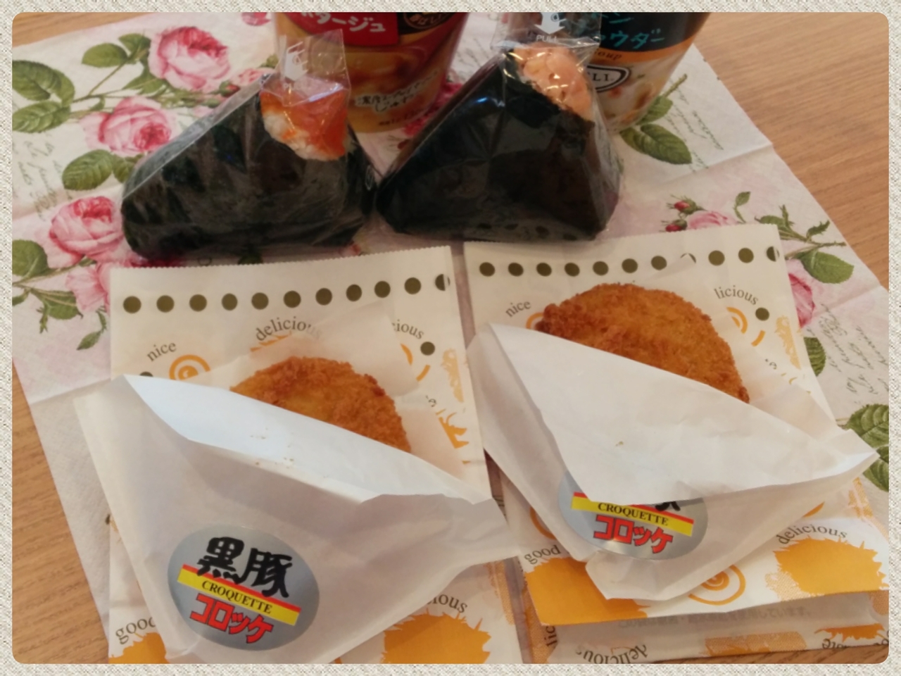 朝食におにぎりとコロッケを購入しました