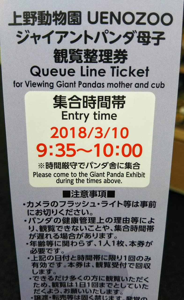 3月10日「9:35~10:00」のパンダ整理券ゲット、シャンシャンに会えました♪