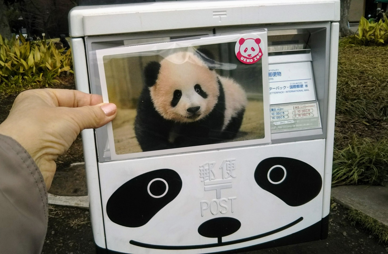 東園表門の外にあるのを以前に発見していたのですが、四角いポストに白黒のパンダの顔をあしらったもので、見た目が面白いだけではなく、そのポストに投函した郵便物(定形郵便物のみ)に特別の消印が押され、届けられるというものです。