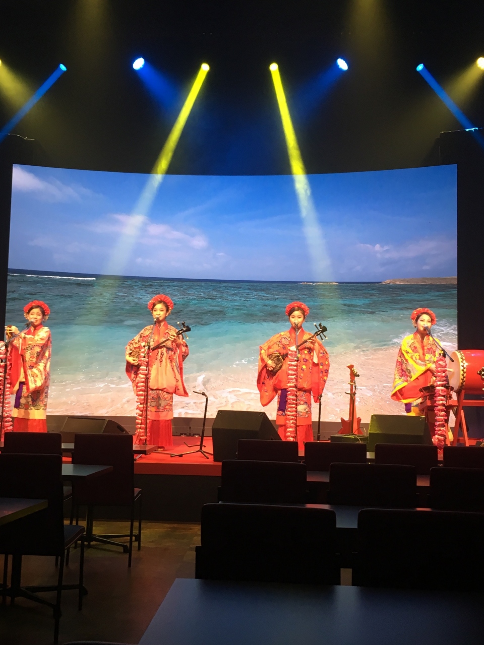 アメリカンビレッジ内にあるライブハウスです。土曜日は有名なりんけんバンドが出演するそうです。平日に行ったのでティンクティンクという女性4人組でした。ライブチャージは1ドリンク込みで大人2800円(りんけんバンドの時は4500円)でした。料理はもちろん別料金になりますが、フードメニューもあり食事も出来ました。幼児連れだったので、食事と7時からのライブを見ただけで帰りましたが、8時からのライブも見たかったです。