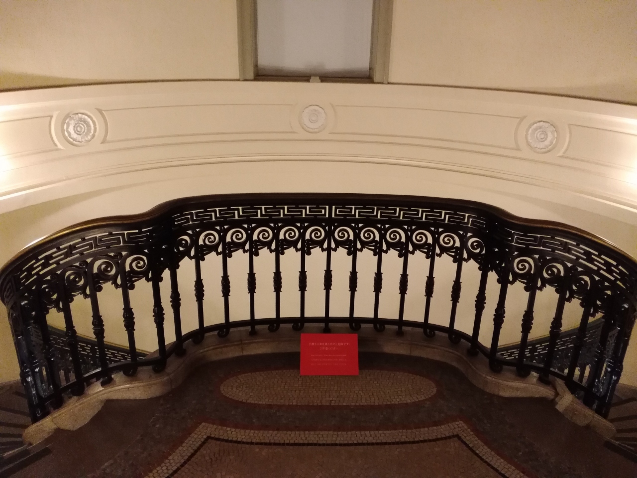 「手摺にもたれるな」との注意書きも。
