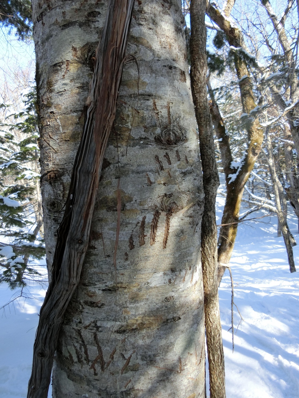 その他、ネズミの足跡やヒグマの爪痕、クマゲラのつついた木なんかもあります。