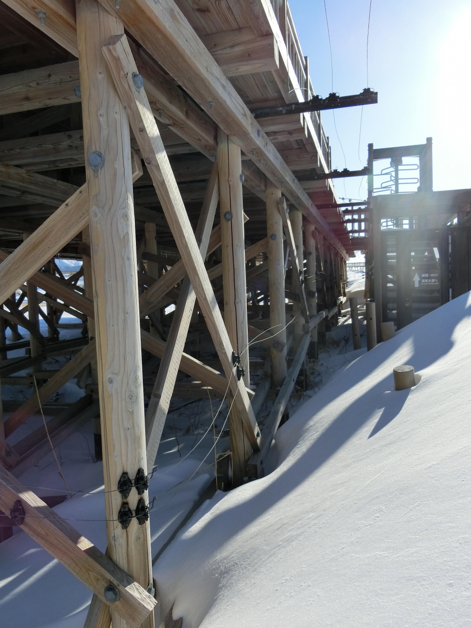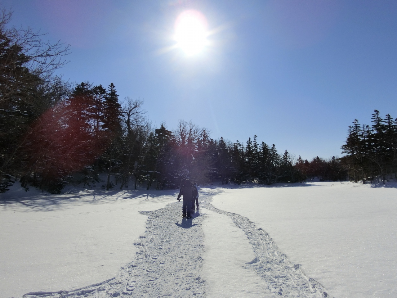夏のルートと違って、冬は湖の上を歩いたりします。
