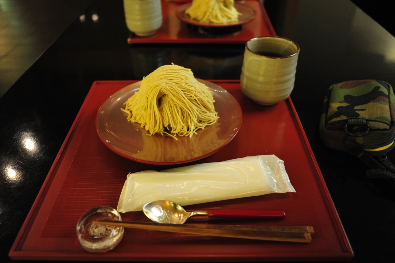 一年のうち秋だけ発売される「栗の点心 朱雀」。午前8時半から整理券を配るというので、宿泊地の松本市を6時半に出発した。小布施町の本店前の交差点についたのは7時半だったが、既に長蛇の列だ。本店の駐車場側入り口から発した列は、駐車場内を一度うねって外の歩道へと伸び、交差点を町営駐車場の方へと伸びていた。奥さんを交差点で降ろして、車は駐車場へ。すでに近くの町営駐車場は満車だった。もう一つ先の町営駐車場に止めて列の最後尾に駆けつけてみると、すでに帰ってくる人が。整理券の配布は8時半からだが、店側が並んだ人を数え、7時45分の段階で列に並ぶのを断り始めたからだ。幸い、何とか滑り込んだ。券をゲットできたのは9時半ごろ。この日、朱雀の提供は9時、10時、16時で、チケットは16時の回の5番目だった。結局、16時15分ごろに朱雀がテーブルに運ばれてきた。味は他の口コミに任せるとして、実は以前に朱雀を食べたという経験者の話を前の晩に聞いていた。60歳代とおぼしき夫婦だったが「ボリュームがあるから、二人で一つで十分よ」とのアドバイスをいただいた。せっかく並んだのだからという思いもあって恐る恐る夫婦二人で二つをオーダーしたが、何のことはない、あっという間に平らげた。