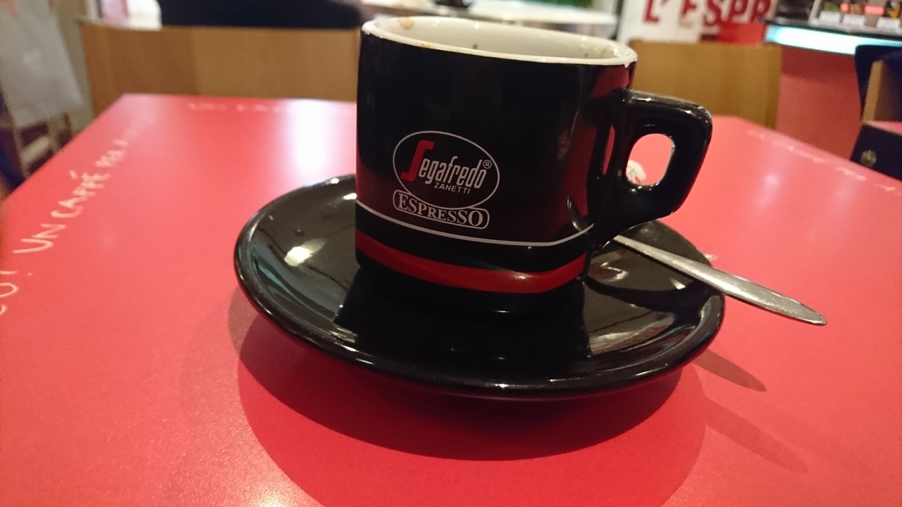 西武新宿駅PePeの1階にあるエスプレッソのお店。赤と黒のツートンカラーのお店は、本部のイタリア・ボローニャらしさからか、他のチェーン店にはないお洒落さがあります。パニーニなどフードメニューも充実しているお店ですが、今回はエスプレッソダブル。本格的なエスプレッソが300円台で飲め、しかもチョコレート付き。本物のエスプレッソがイタリアンのお店でなくても気軽に味わえるお店です。