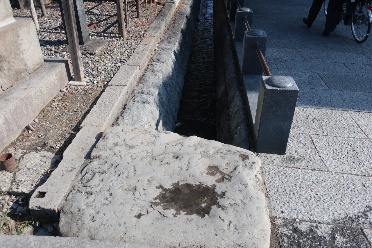 一歩で跨げるくらいの、溝に掛かった