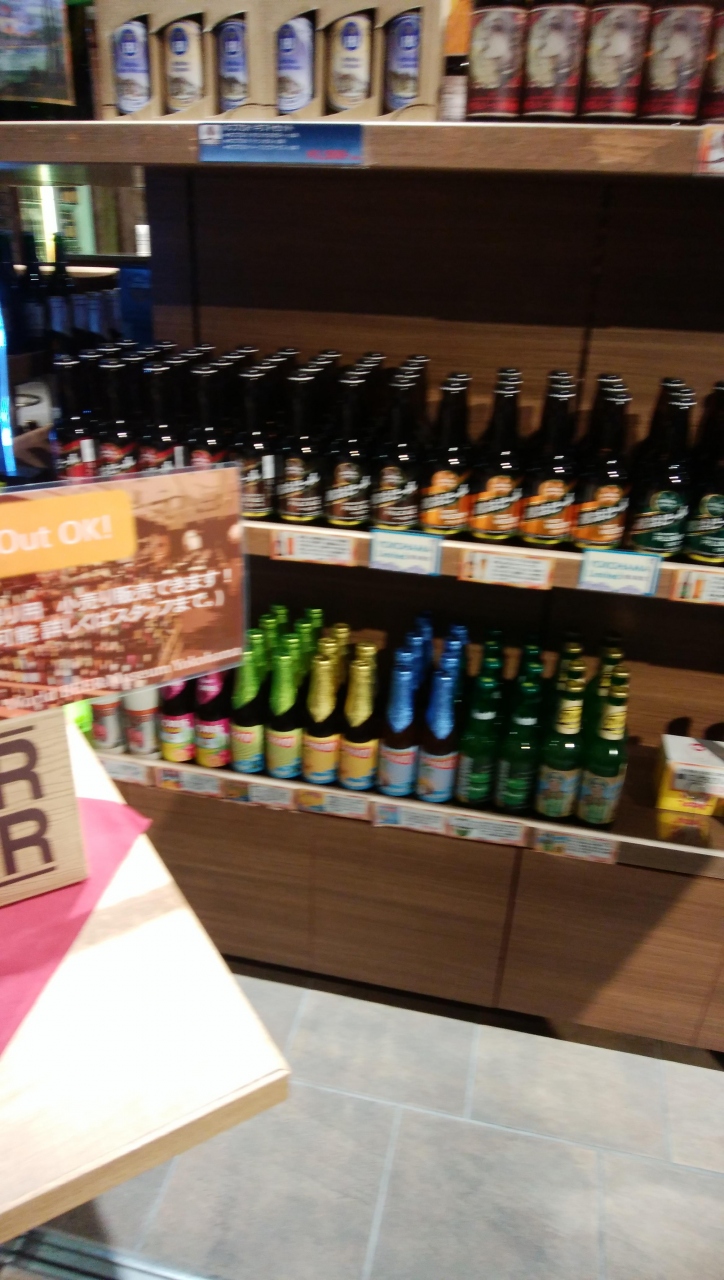 ランドマークの中にあるドッグヤードというライトアップなどのイベントスペースの場所が地下2Fまでの深さがあり、ドッグヤードのライトアップみた帰りに偶然みつけました。このエリアはお店があつまっているのですが、屋台のような雰囲気のお店が多い感じなのですが、通路にそってお客が飲み食いしているので食べている様子がわかるのですが、このビールお店は違いました。スカイツリーのあたりにもあり、いくつかお店があるチェーンのお店です。入口にもたくさんビールが置かれていて、世界のあちこちのビールが楽しめるお店です