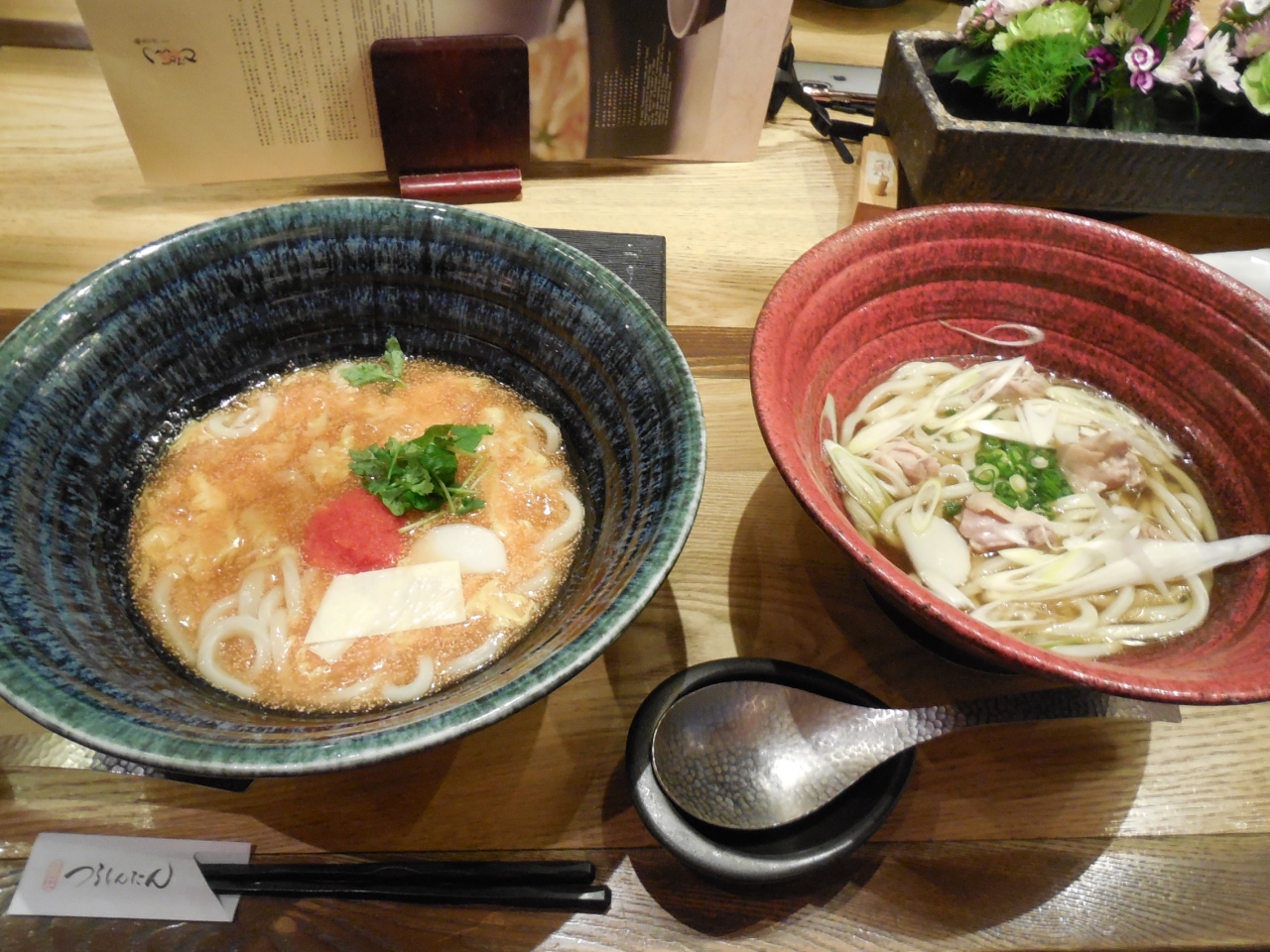 国内旅行の帰りに国際線まで足を延ばし食べに行きました。待ち時間は覚悟していましたが,お昼で約1時間待ちました。待ち時間の椅子が少ししかなかったので立ちっぱなしで疲れました。海外のお客さんの割合が多いですね。味は評判通りとてもおいしかったのですが、鳥うどんは、スープが少しぬるく残念でした。席について、お料理が出てくるまでとても早く、店員さんもテキパキ動いていました。