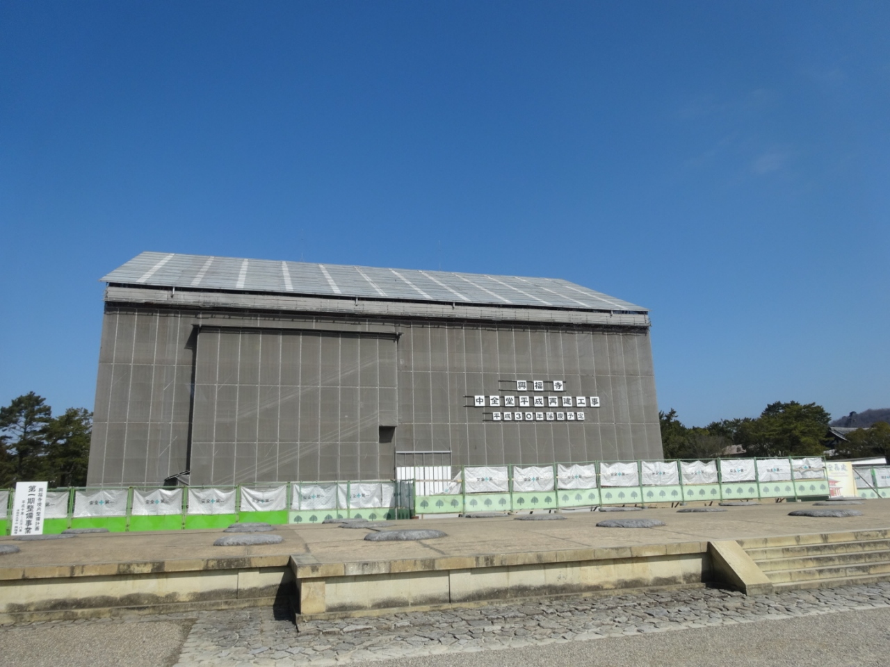 興福寺の広い境内のちょうど真ん中ぐらいに大きなビニールハウスのような建物があって、なんだろうと思ったら再建の工事中のようでした。