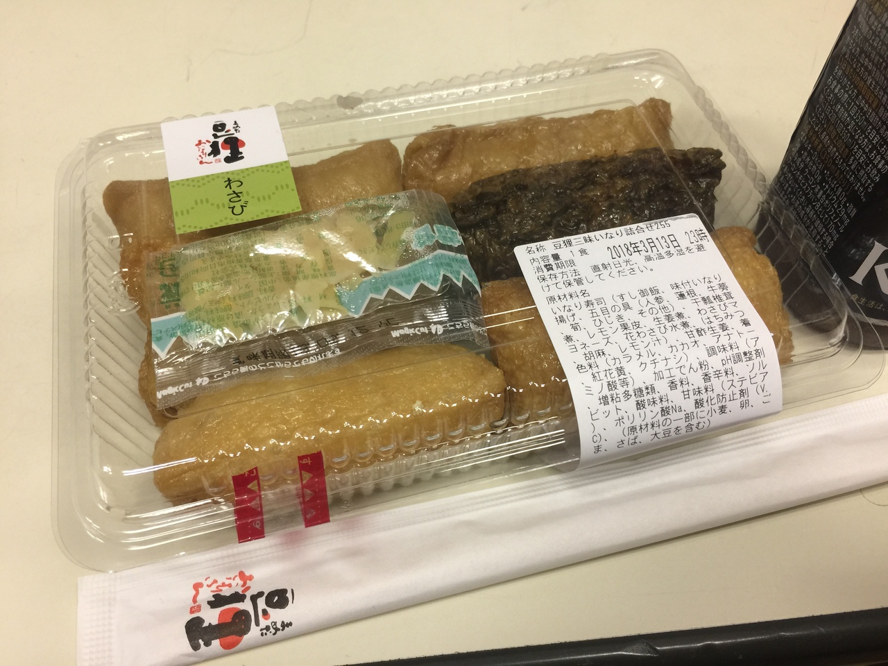 朝に利用しました。昼を食べる時間があまり無いのでそれ用に購入しました。買ったのは豆狸三昧のいなり6個入りです。いろいろな種類のいなり寿司が入っててイイですよ。