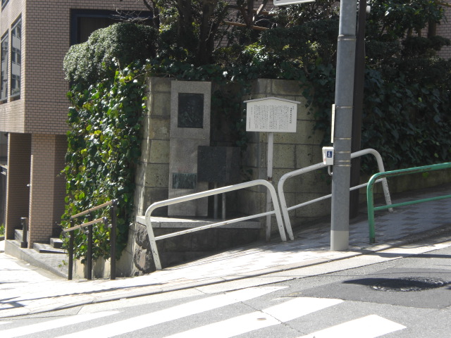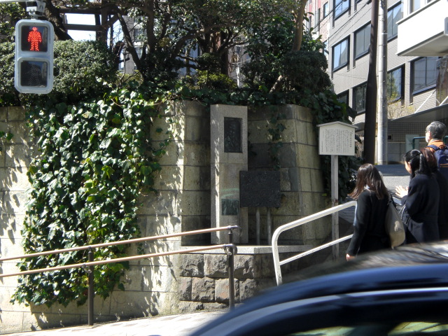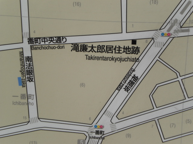 滝廉太郎住居跡の碑は、番町中央通りと半蔵門通りの交差した角に、あります。