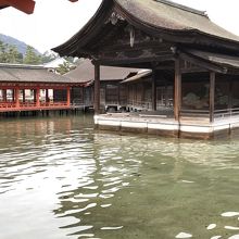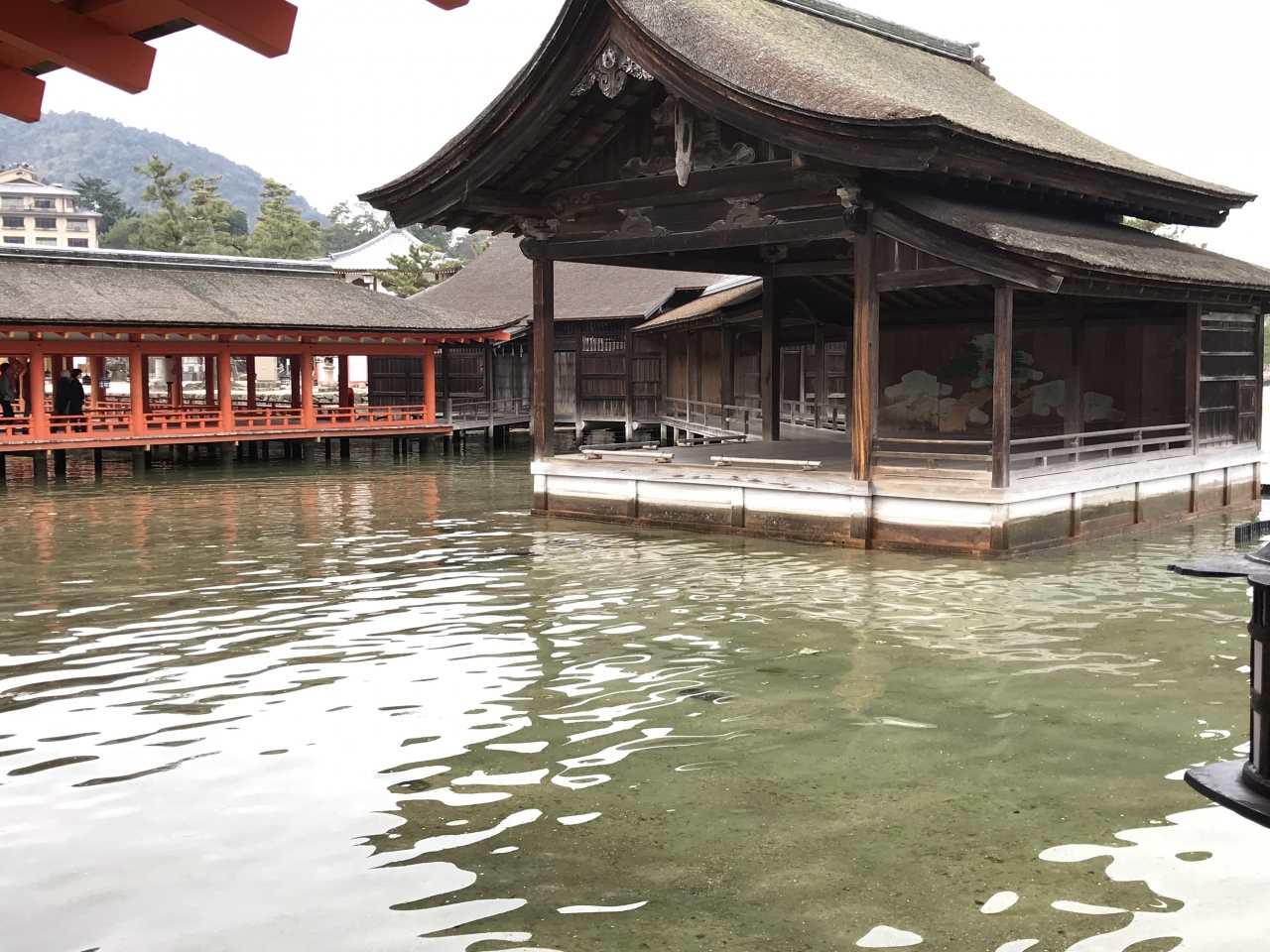 今でも、特別な行事の際は、ここで能が舞われるそうですが、観光客は、上に上がることは出来ないので、西廻廊から眺めるだけでした。