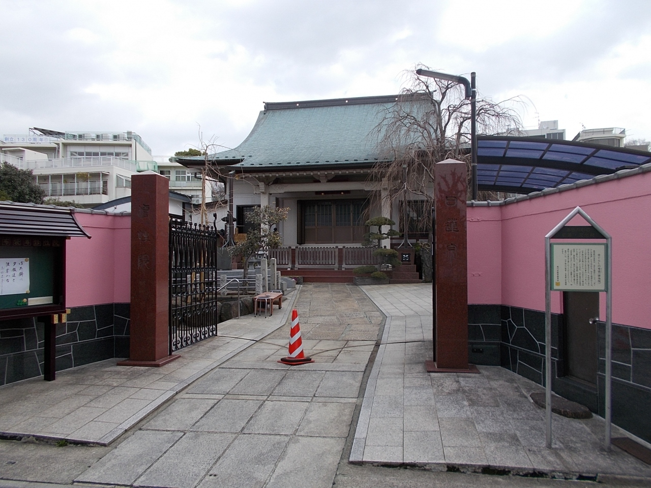 西日暮里の富士見坂を下りると右手にある寺院です。青雲寺とともに花見寺といわれています。その姿は歌川広重の浮世絵にも描かれています。注目は寺の外壁です。布袋尊の絵がいくつも描かれています。その絵の通り谷中の七福神の一つ布袋尊が安置されています。