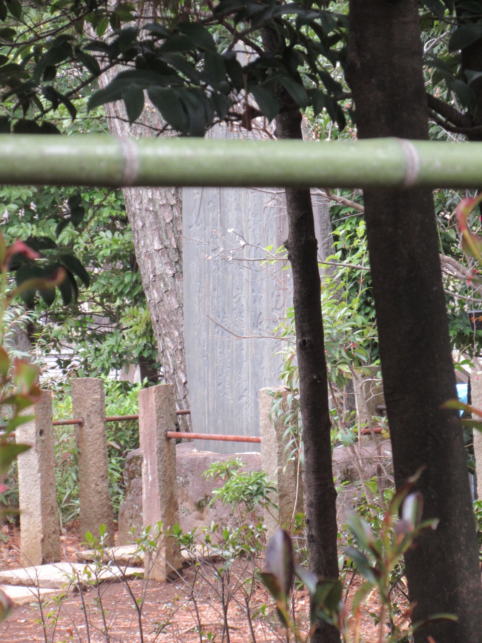 洗足駅から右回りで洗足池沿いを7分ほど歩くと碑がまとまって建っているところの中にあります。訪れた時に勝海舟夫妻の墓周りの改修と道路の石畳舗装工事中で勝海舟夫妻の墓を含めた広い場所がフェンスで囲まれていました。公園沿いの道路からかろうじて碑の側面を見ることができました。フェンスに見ることのできない墓や碑の画像と説明が貼ってありました。勝海舟が西郷隆盛の死を悼み私費で三回忌に当たる1879年に葛飾区に建てたものを1913年に現在地に移しました。数日後に工事が終了するようなのでまた訪れたいです。