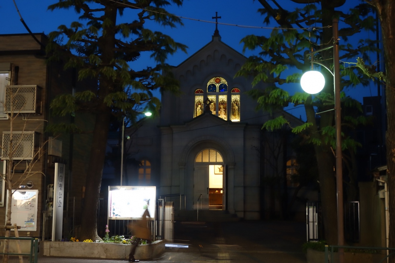 時々用事が有って目白へ出かけます。こちらは目白通り沿いにある教会で門の向こうに美しい教会の建物とステンドグラスが見えて印象的です。もともとは病院だったという建物はモダンで、夜も美しい姿を見せてくれるステンドグラスはイギリスの修道院から贈られたという価値の有るものです。