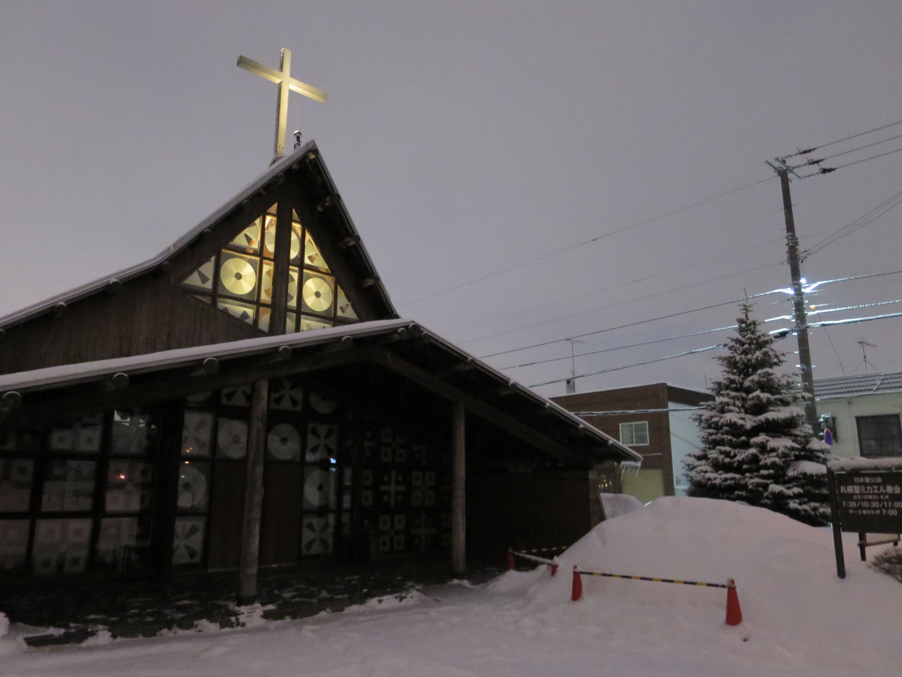札幌の住宅地にあって、建物の建築美が目を引く教会です。