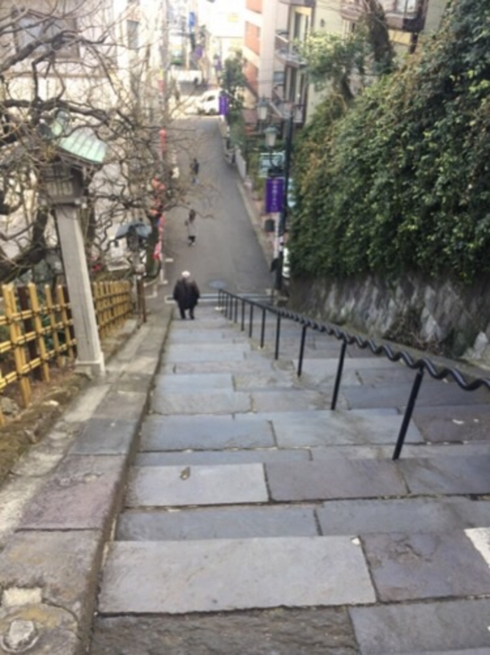 昔は湯島天神参拝のための坂でしたが、その後、本郷から上野広小路に抜ける通り道にもなっていて、急ながら割と人通りが多いです。