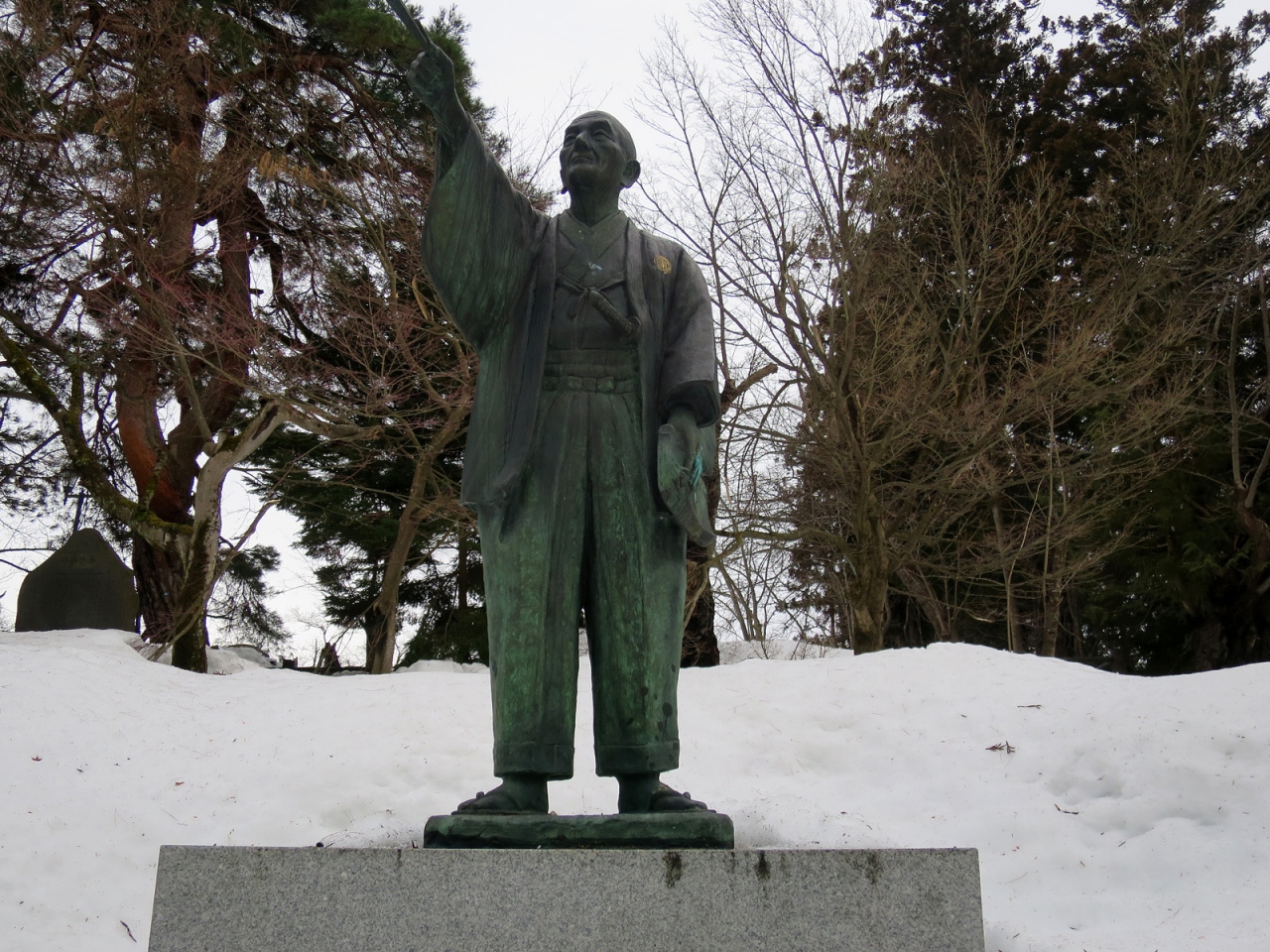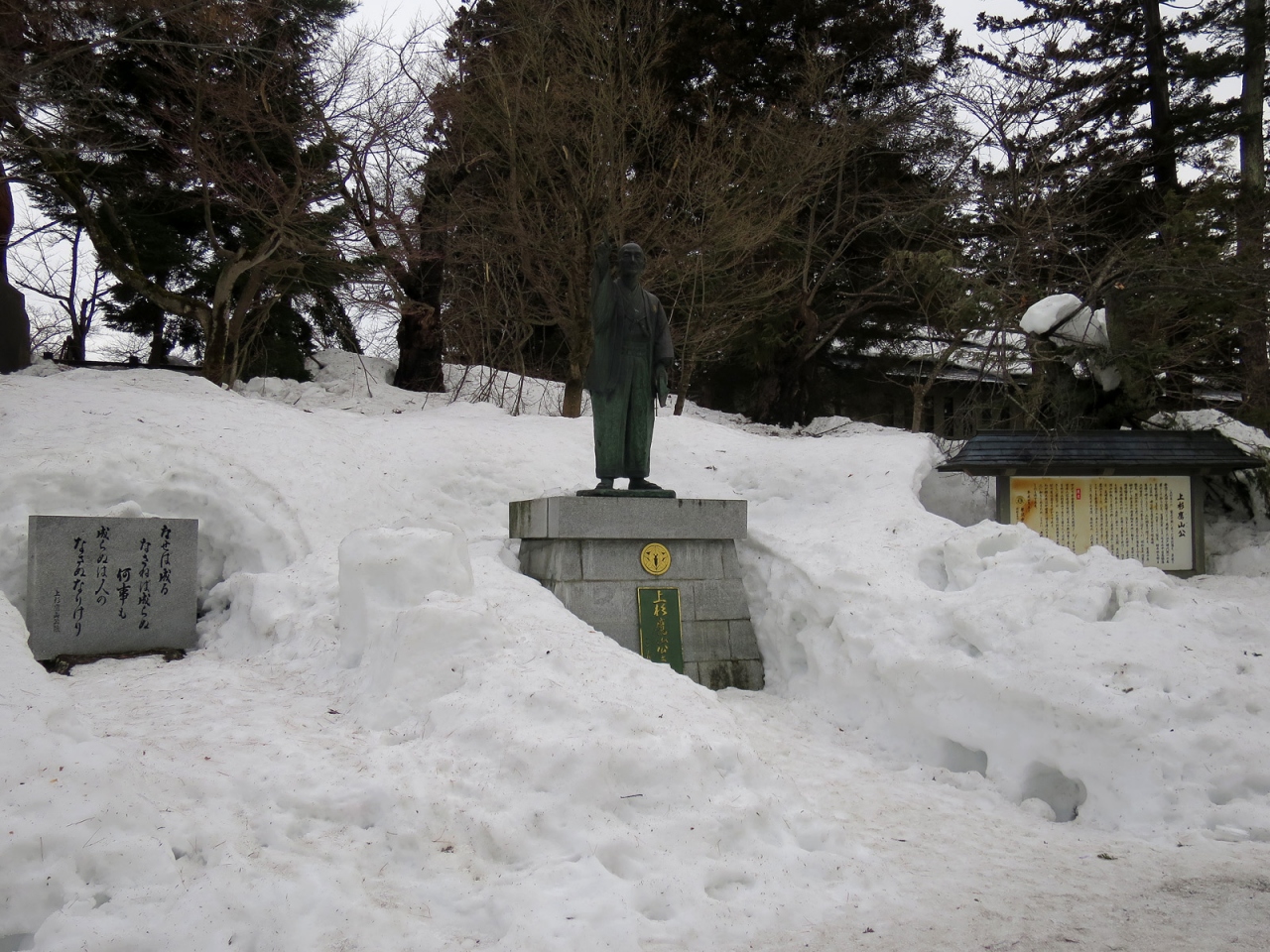 上杉神社参道左手にある「上杉鷹山公之像」は、米沢中央ライオンズクラブが建立した像で、日付は平成4年5月とありました。鷹山公は袴姿の平服で、何かの工事の陣頭指揮を執られているような姿は、まさに鷹山公らしいと思います