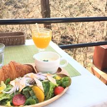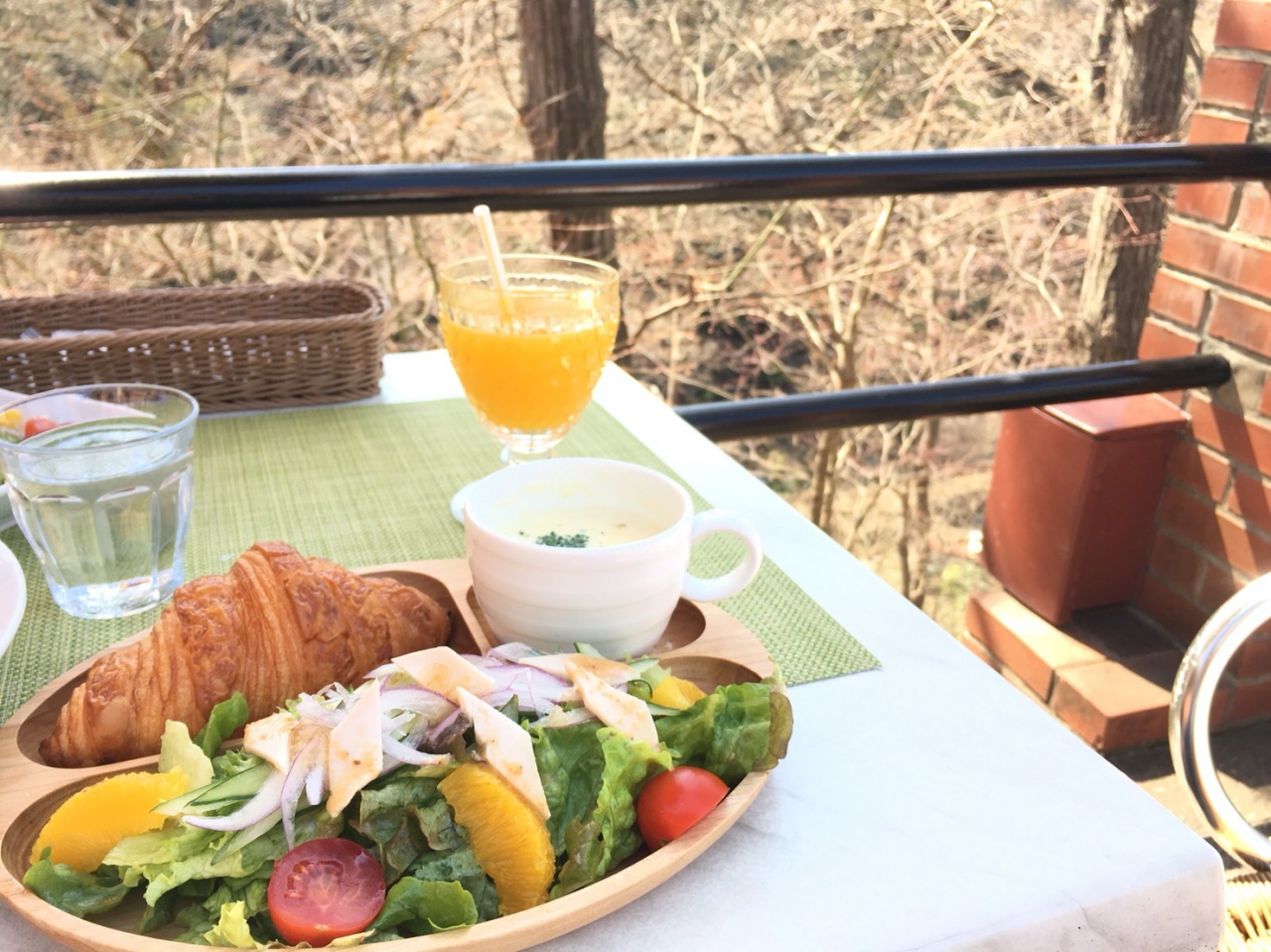 テラスからは山々が望める絶景、鎌倉の綺麗な空気、風を味わえる場所です。
