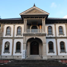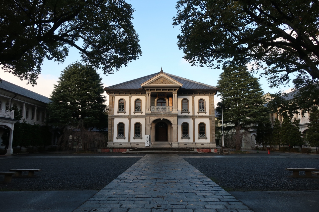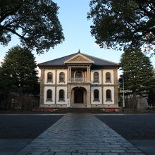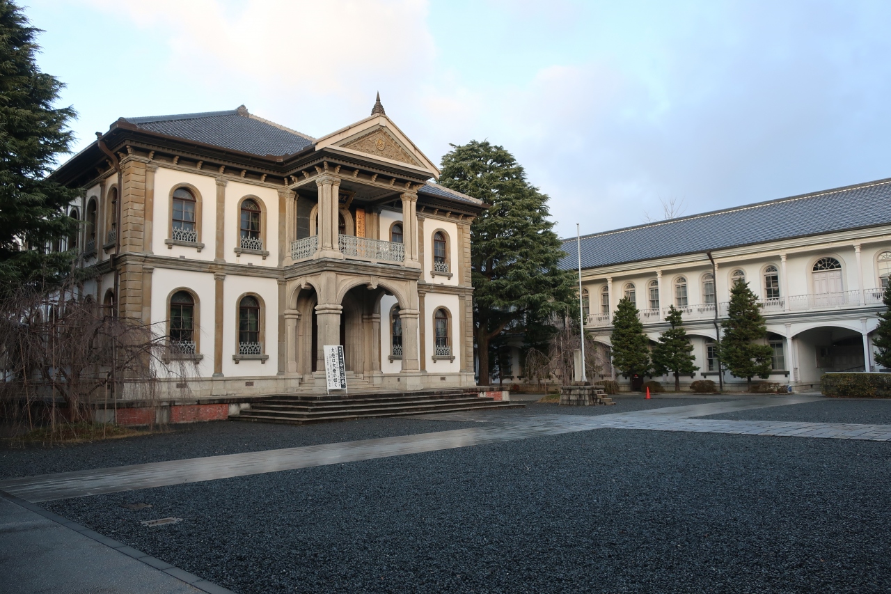 大学敷地内は関係者以外立ち入り禁止だと思い、守衛所に断って入りました。正面に建つ本館、両サイドに建つ北黌、南黌、渡り廊下など明治に建てられた創建当時の姿がそのまま残る珍しい大学校舎です。近代洋風建築好きには必見の建物です。