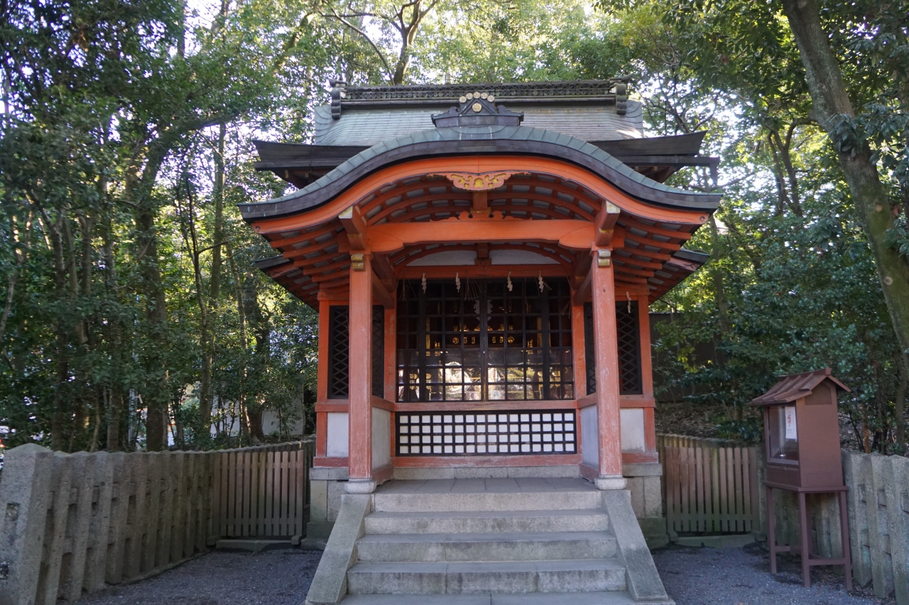 八坂神社の西楼門を入ってすぐには、いくつかの小さな境内摂社が並んでいますが、疫神社は、一番左手。祭神は蘇民将来命。祖神が宿を請うた際、粟の粥で厚くもてなしたので、子孫は災疫から逃れ繁栄したという言い伝え。傍らに説明板が建っています。
