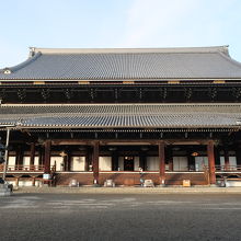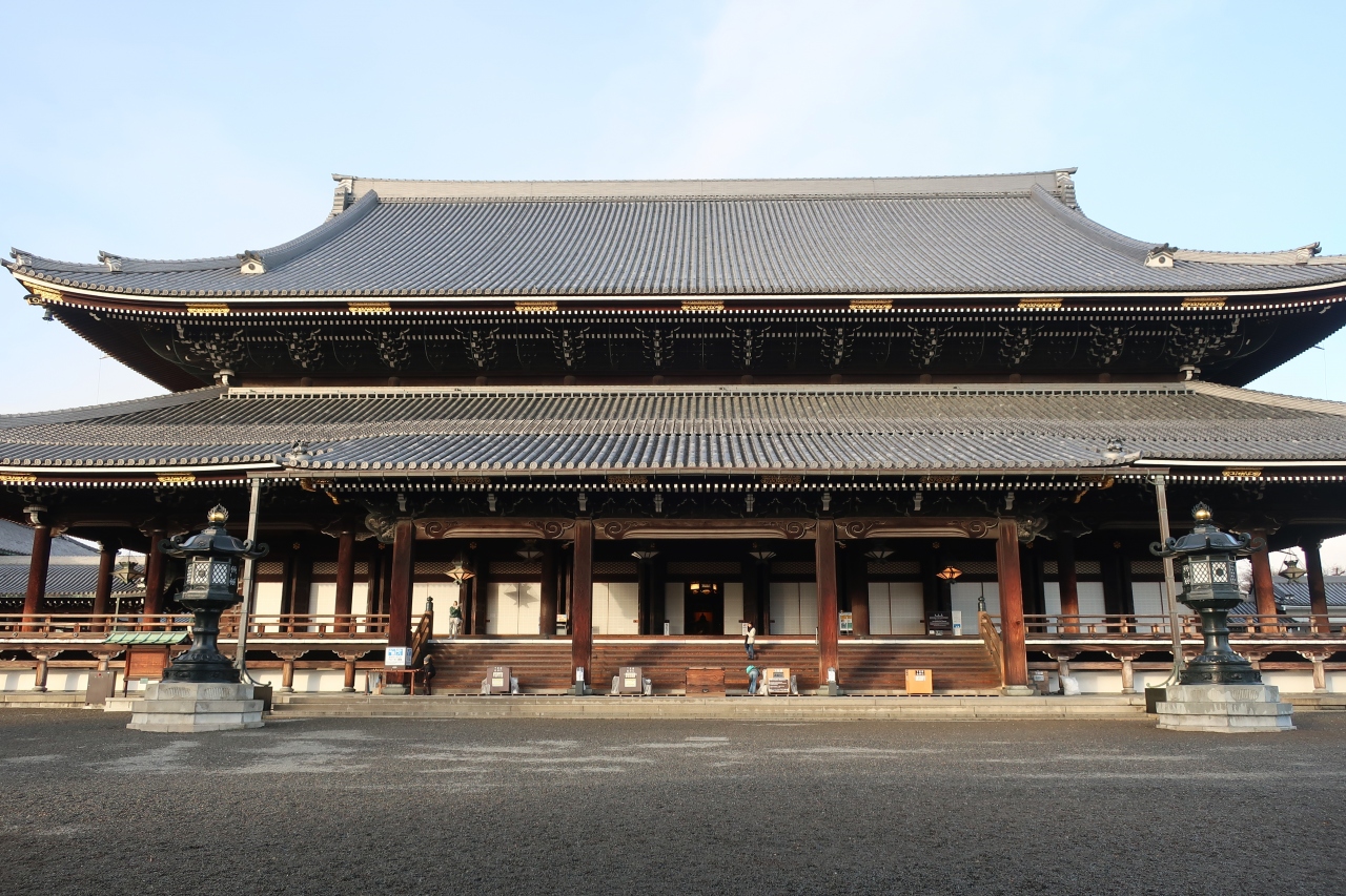 東本願寺の境内には阿弥陀堂と御影堂と2つの大きな建築物がありますが、その北側にあるのが御影堂です。二層の入母屋造りの世界最大の木造建築物です。こちらも明治期に16年の歳月を再建された木造建築は圧巻です。内陣に上がって柱を見れば分かりますが、今ではこんな建物を建てる木材はないので、二度と作れないのではないでしょうか。