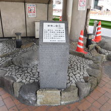 銀座東七丁目の交差点に架かる歩道橋の銀座8丁目側の階段を降りてすぐの場所にありました。銀座周辺の地図を見ていた所、「汐留遺跡(建物の礎石)」と表示があったので、気になって見に行きましたが、説明板が無ければ、全く気付かないような場所でした。交差点を挟んで丁度斜め向かい側には、「間知石と切り石」がありました。