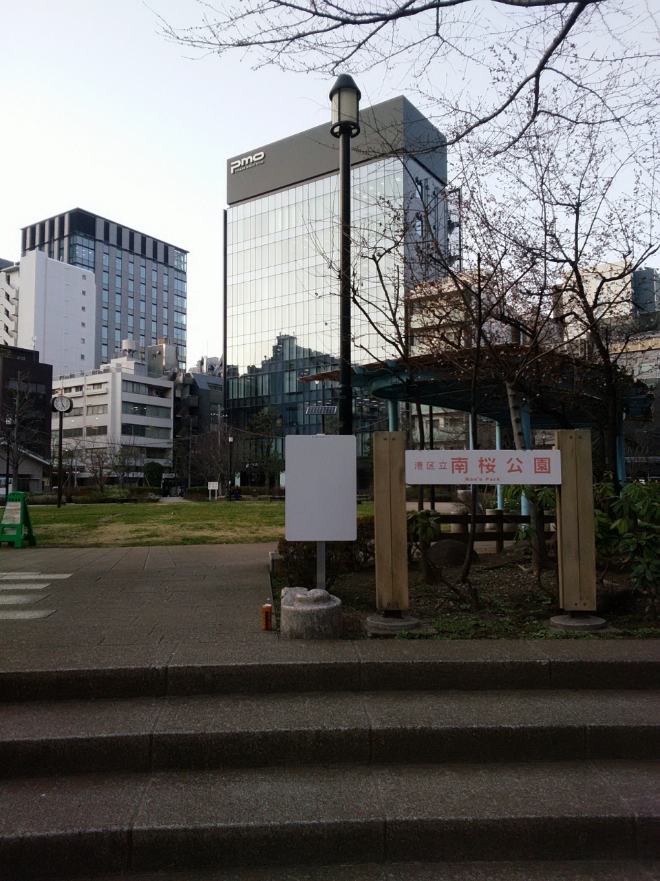 新橋駅の烏森口から徒歩5分程、オフィスビルや飲食店などが建ち並ぶ一角にある公園です。都会のど真ん中にありながら、公園は広く、開放感がありました。早咲きの桜も咲いており、暖かい天気の良い日なら憩いの場所でもあります。