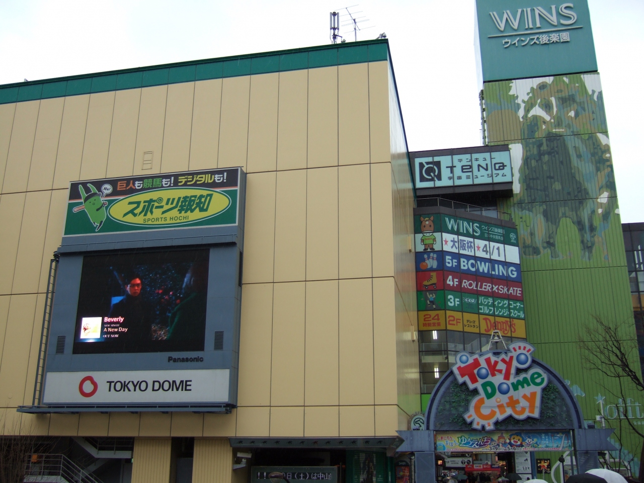 東京ドームの手前のビルにはレストランからボウリング、バッティングセンターに、郵便局から場外馬券まであります。