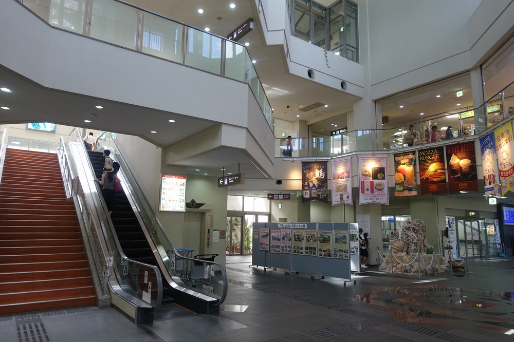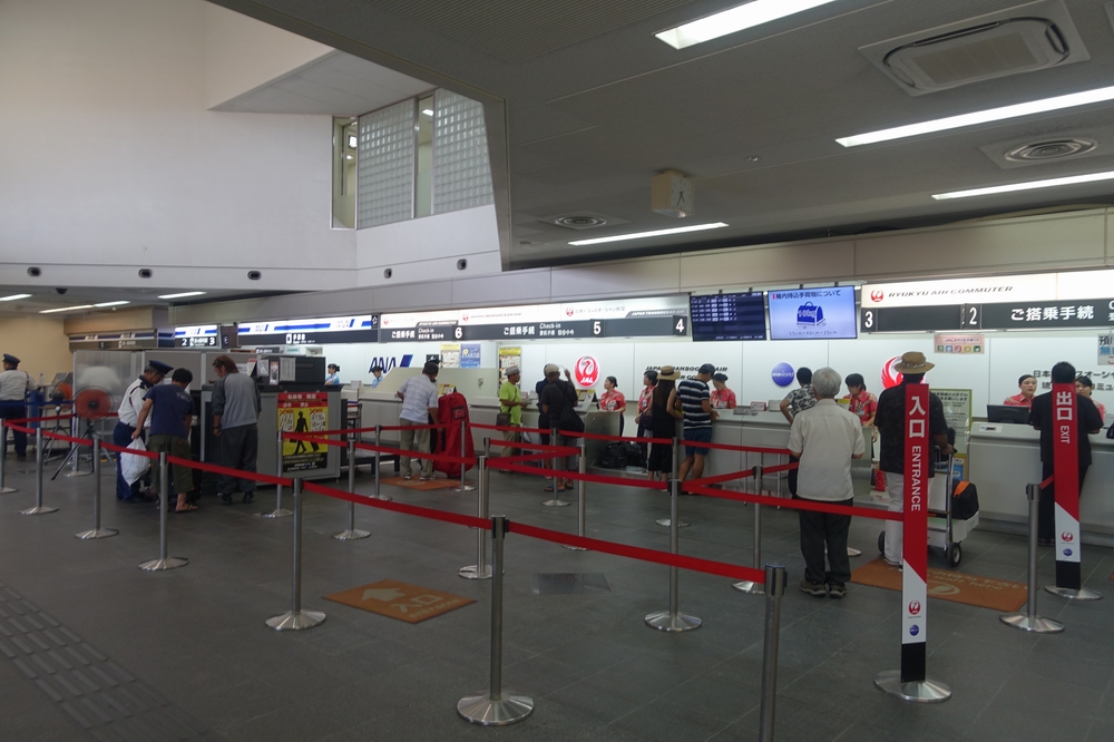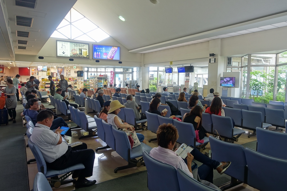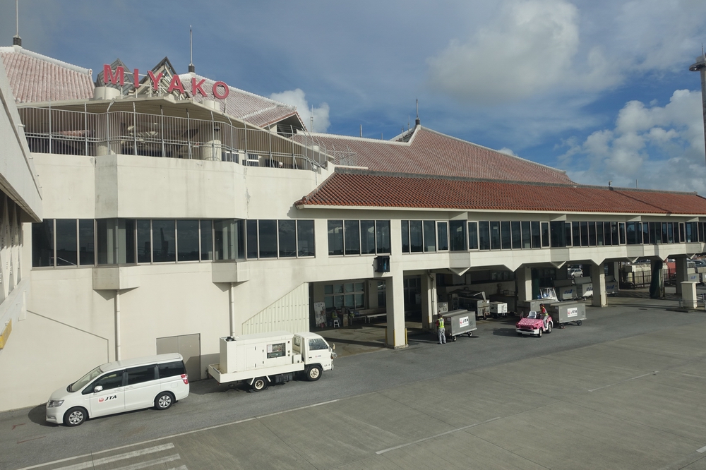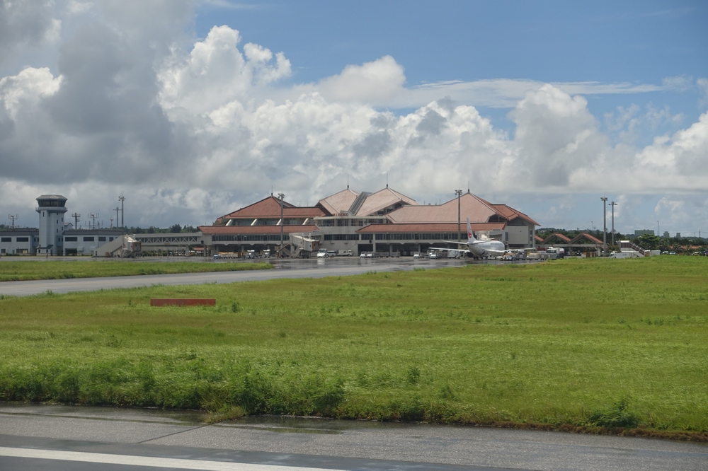 空港ターミナルはなぜか市街地とは反対側。でも、空港から市街地まで距離のある石垣島に比べれば近いです。ただし石垣島と違い空港から先の移動手段は、ツアーやホテルでお迎えがある人以外はレンタカーかタクシーのほぼ二択。路線バスは無いと思ったほうがいいです。