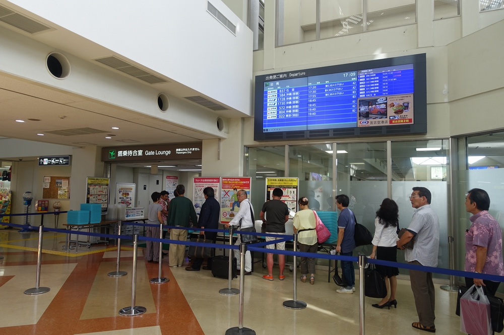 2階には土産物店が何店舗もあるので、空港に戻ってくるまでお土産が買えなかった場合でもある程度揃いますし、買い足すこともできて安心。宮古島に来る人が増えたせいか、今回保安検査場で少し並びました。