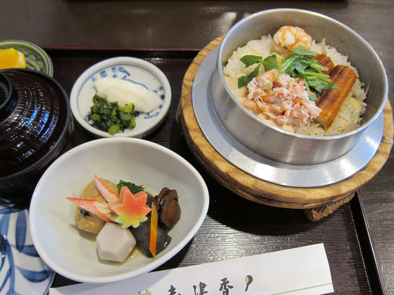 2時過ぎにお店の前を通りかかったら、いつもより行列が少ない、と言う事で、並んで食べました。釜飯専門店で、アジアの人達も並んでいました。英語のメニューもあり。