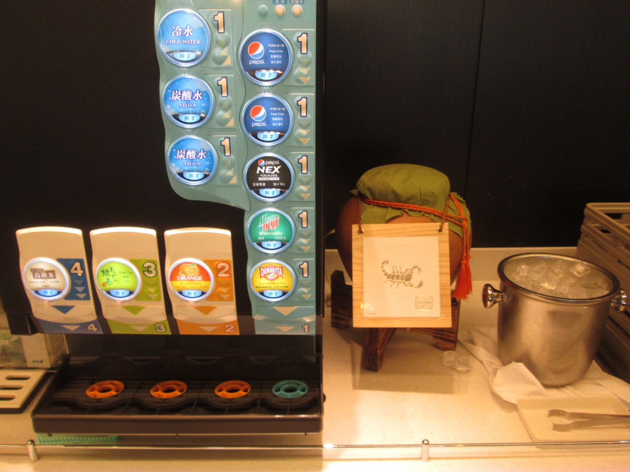 羽田空港国内線ANAラウンジのソフトドリンクは種類豊富で10種類以上ありました。初夏の暑い時期だったので、ジュースがおいしかったです。ゴロンとした氷が置かれており、なくなっては補充、なくなっては補充されての繰り返しでした