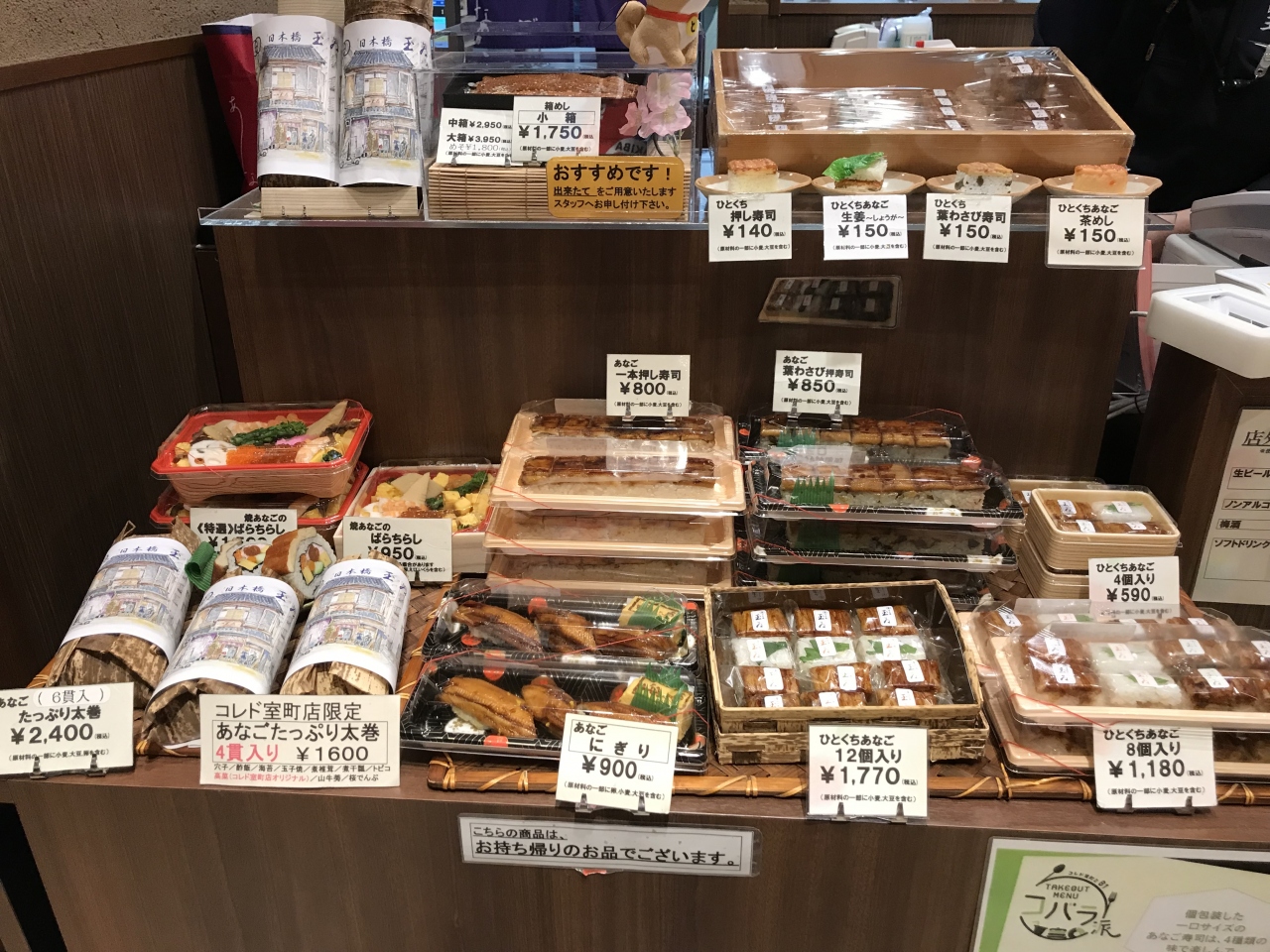 日本橋のアナゴで有名な玉ゐさん。テイクアウトがしたかったので本店などに比べてコレドだと開店が早いので便利です。