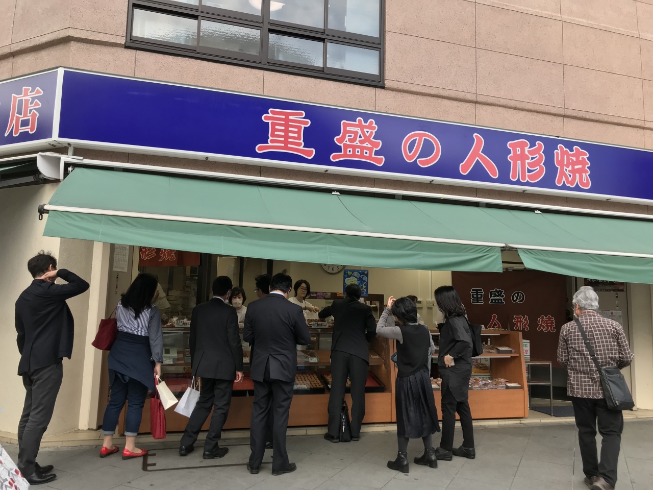 水天宮の目の前にある人形焼で有名なお店。ドラマや映画のポスターが飾ってあります。
